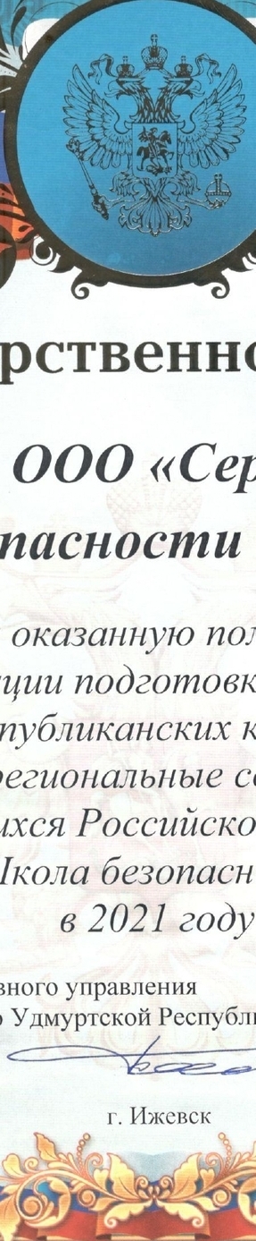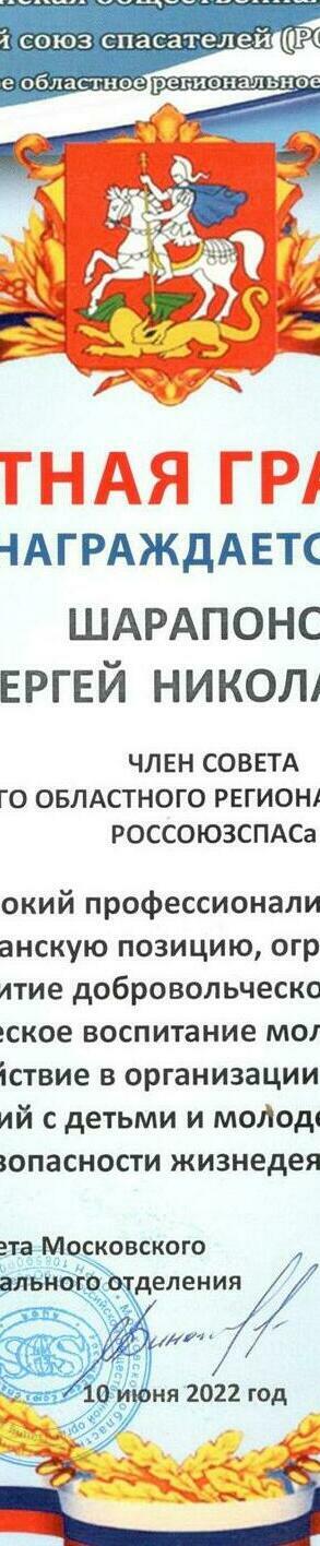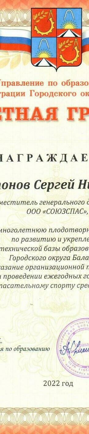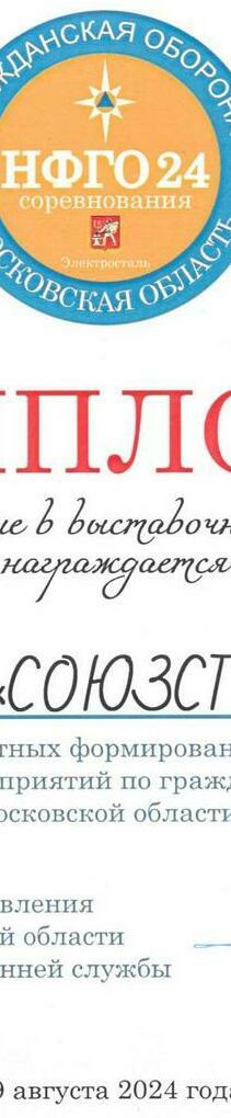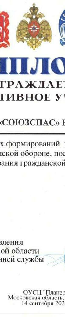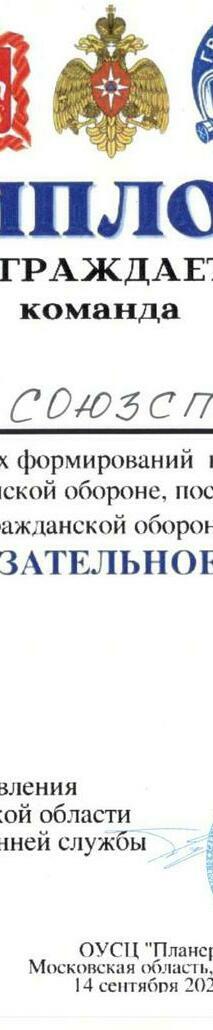 Диплом ООО "СОЮЗСПАС" за участие в организации соревноваий НФГО 2022