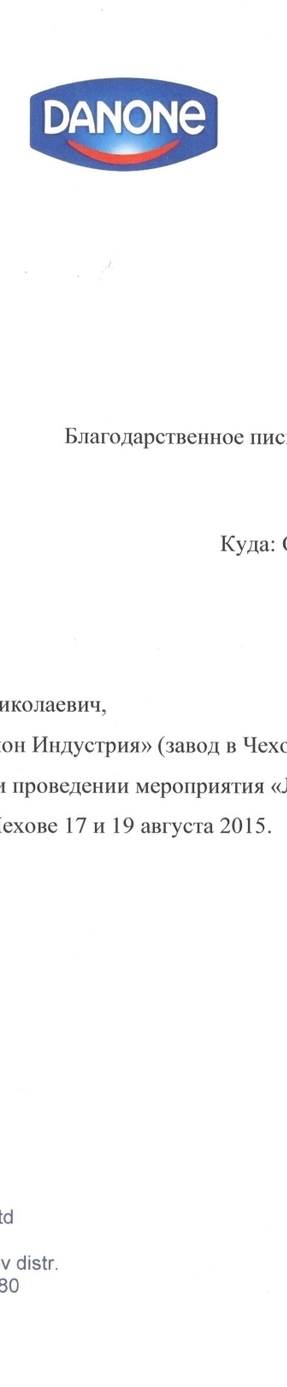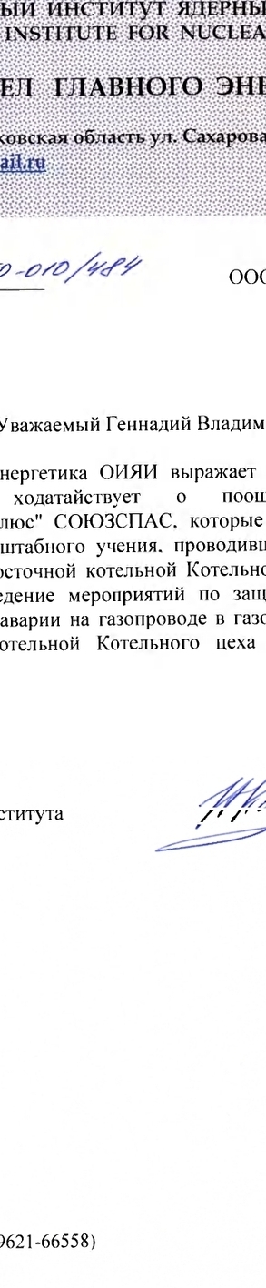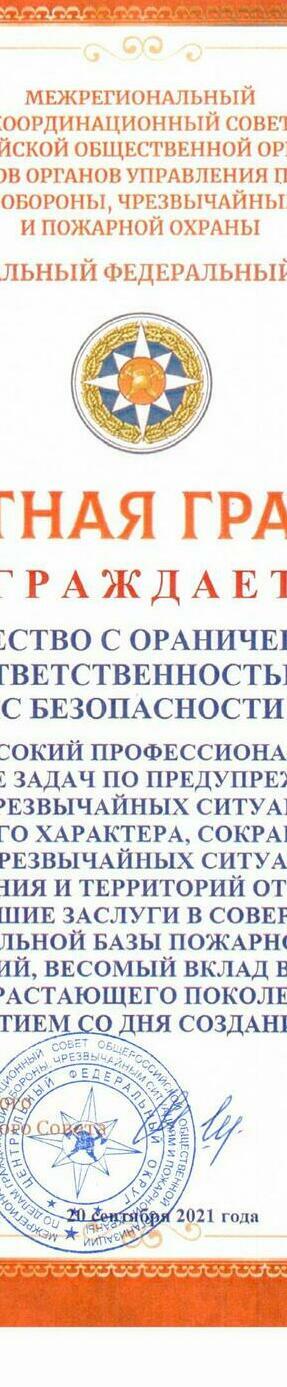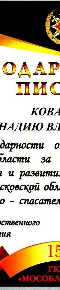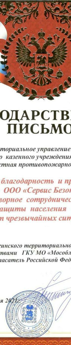 Благодарственное письмо от ГКУ МО "Мособлпожспас"