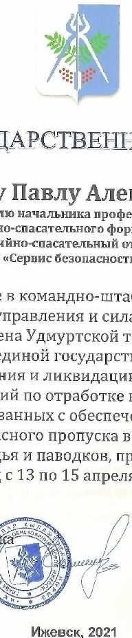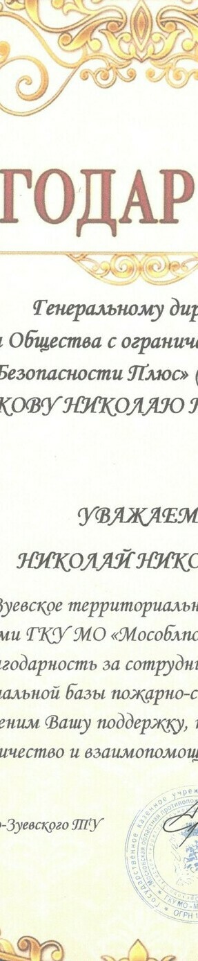 Благодарность от Орехово-Зуевского ТУ СиС ГКУ МО "Мособлпожспас"