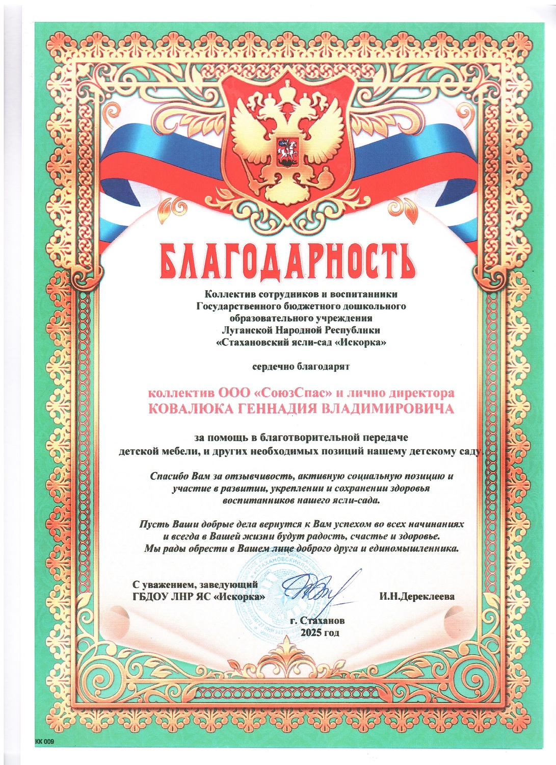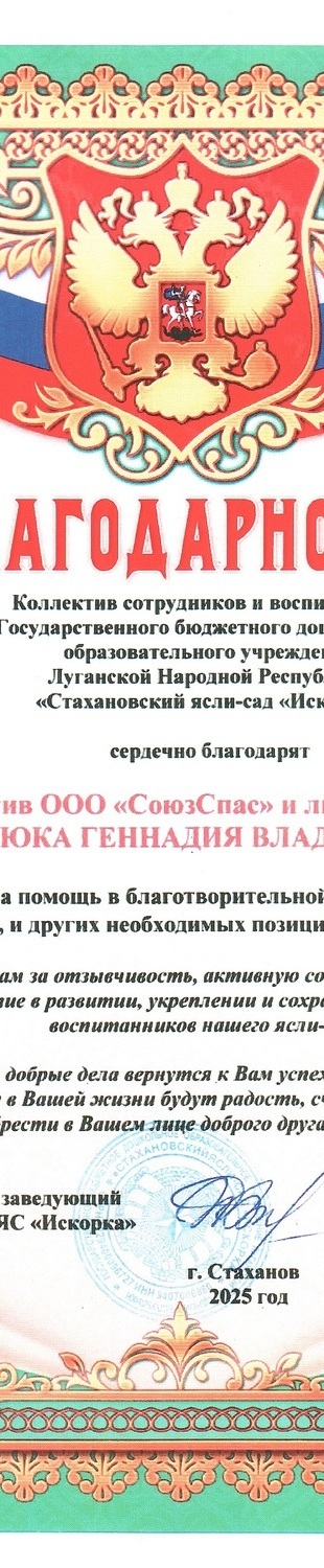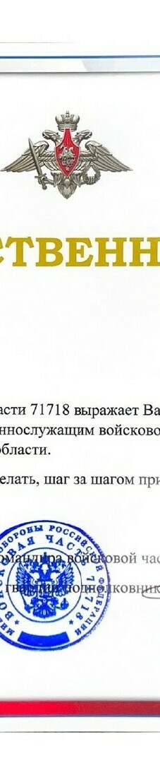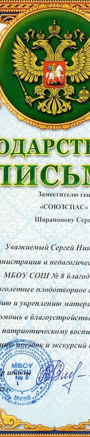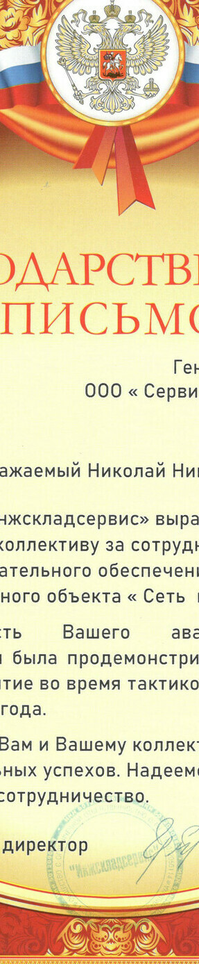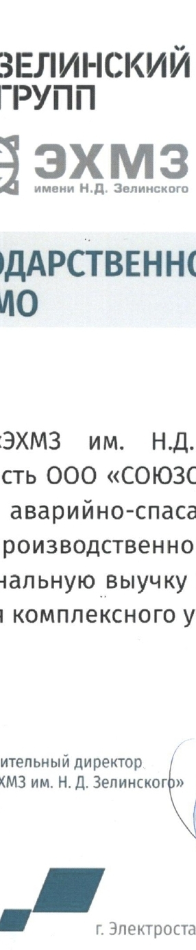 Благодарсвенное письмо ЭХМЗ им. Н.Д. Зелинского