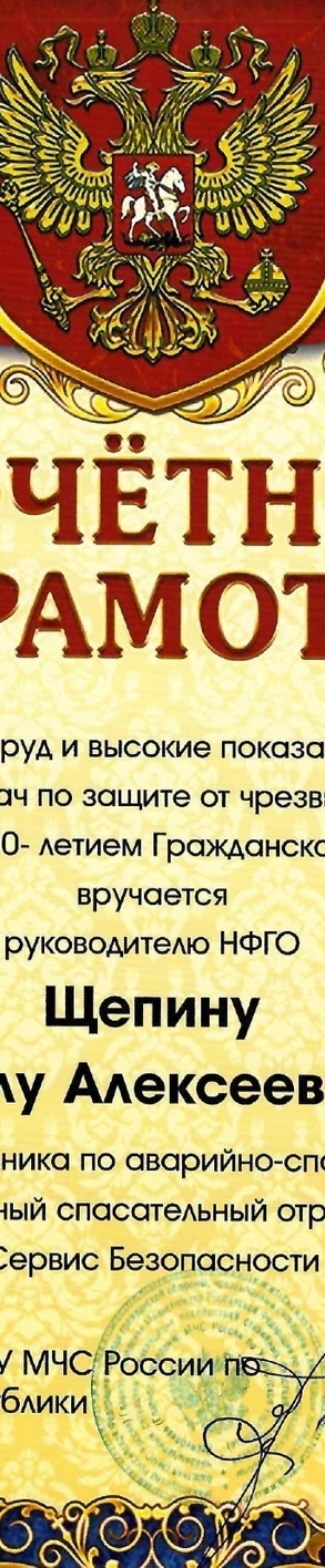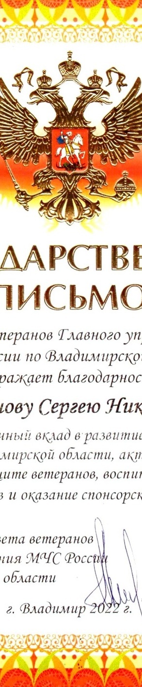 Благодарственное письмо от Совета ветеранов ГУ МЧС по Владимирской области