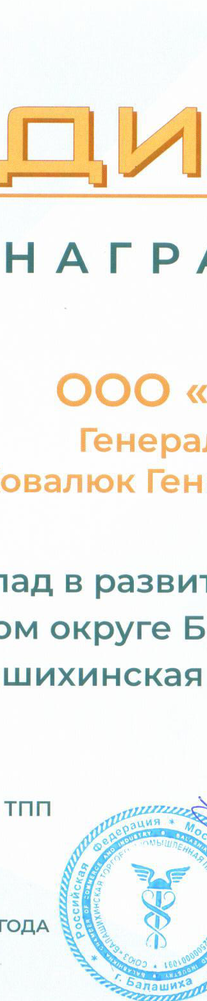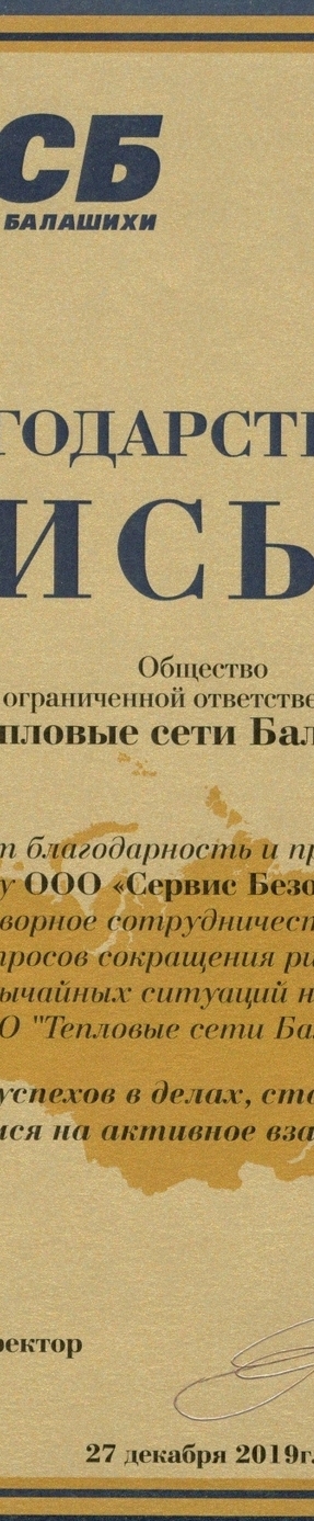 Благодарственное письмо от ООО "Тепловые сети Балашихи"