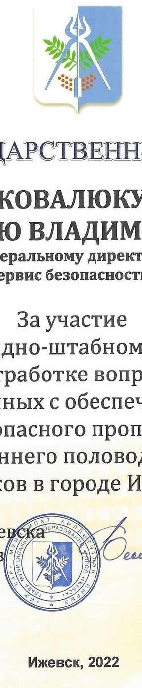 Диплом Ковалюку Г.В. за участие в организации соревноваий НФГО 2022