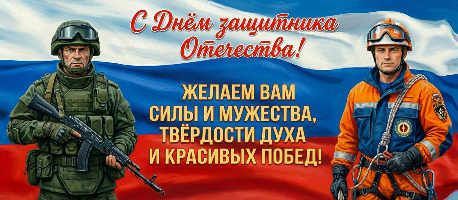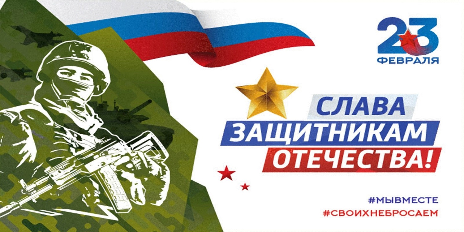 Поздравляем Вас с Днем Защитника Отечества! В этот праздник мужества, доблести и отваги мы поздравляем наших героев, солдат, бойцов, сражающихся на СВО, и благодарим их за то, что они делают для России и нашего будущего.