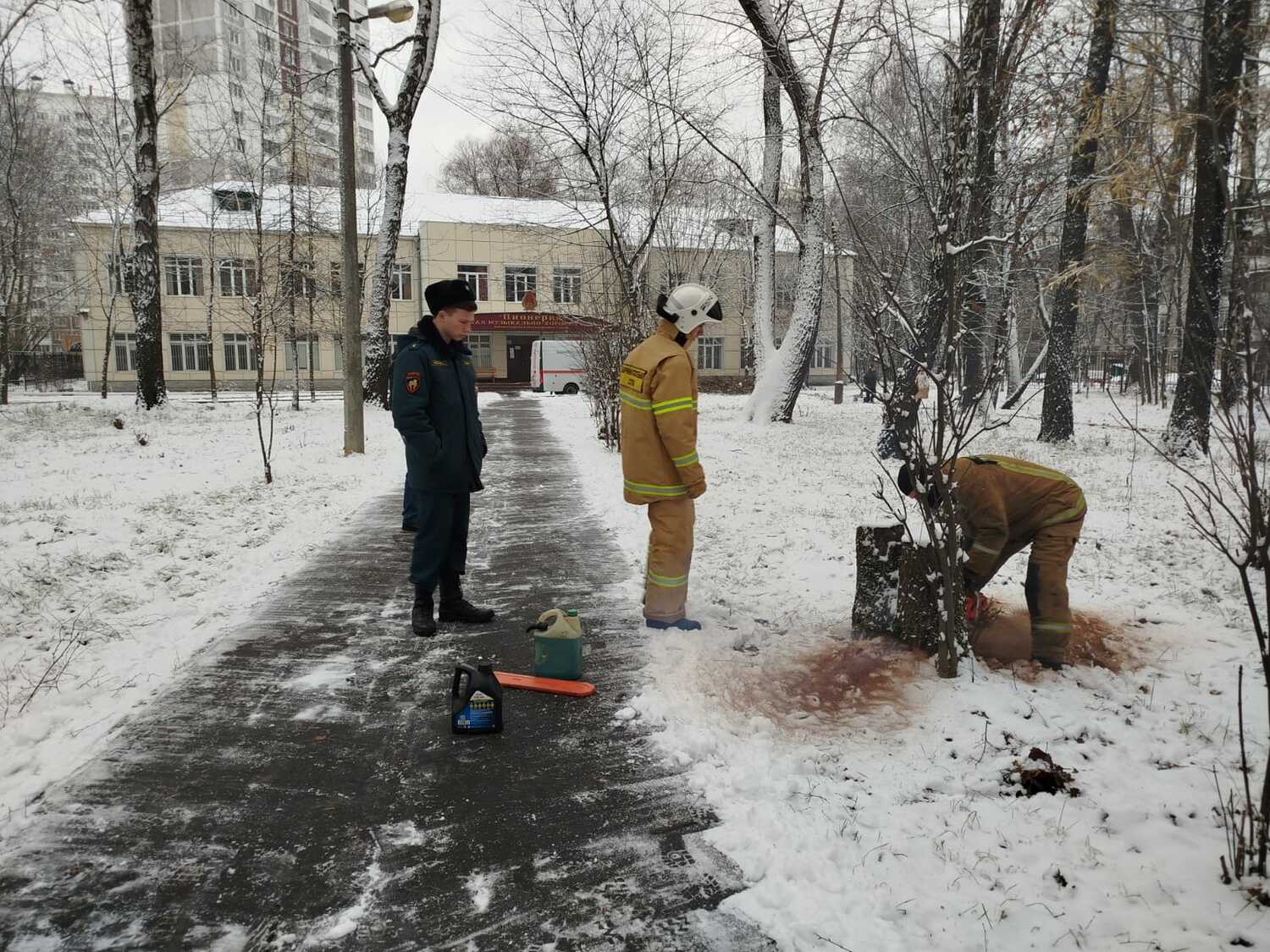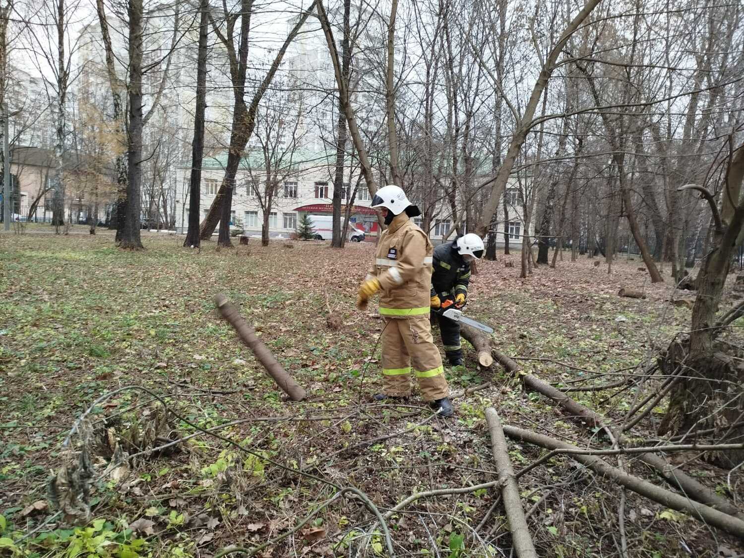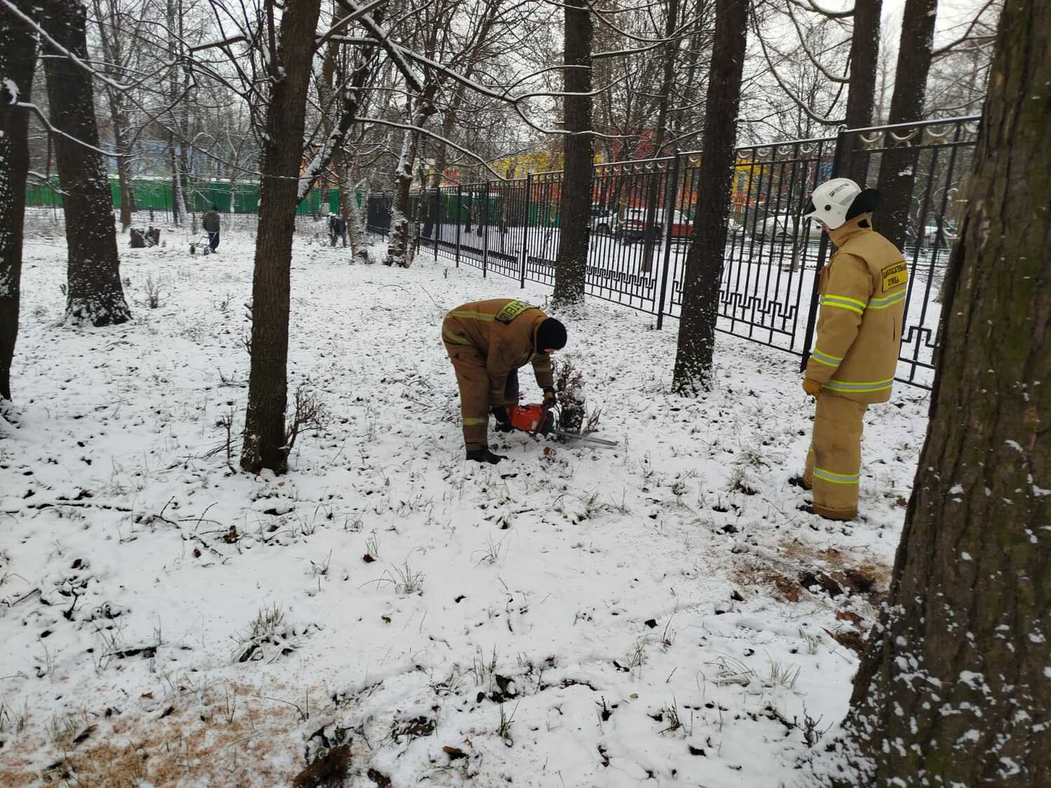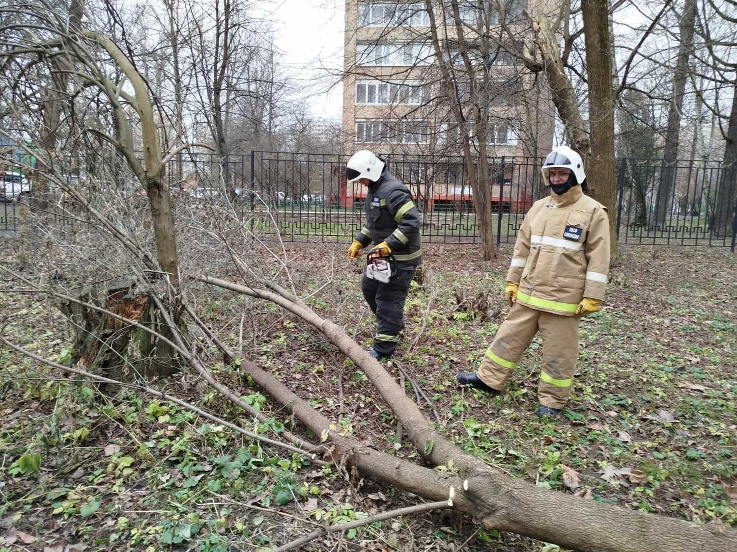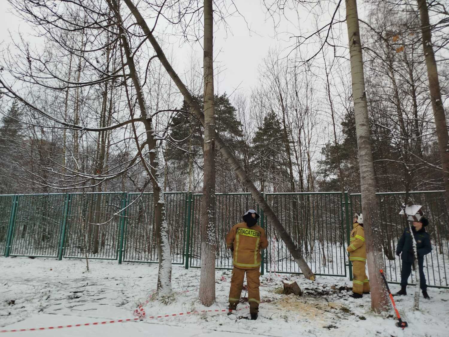 По просьбе администрации детского дошкольного учреждения в микрорайоне Кучино городского округа Балашиха спасатели ООО «СОЮЗСПАС» спилили аварийные деревья.