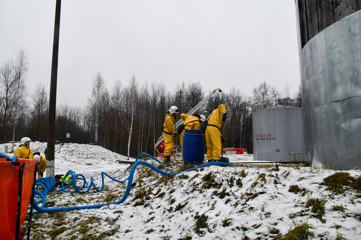 В рамках данных мероприятий была моделирована ситуация условного разрыва ёмкости с дизельным топливом вследствие технической неисправности оборудования.Прибывшие подразделения пожарной охраны осуществили пенную атаку для локализации разлива и эвакуировали людей из потенциально опасной зоны.