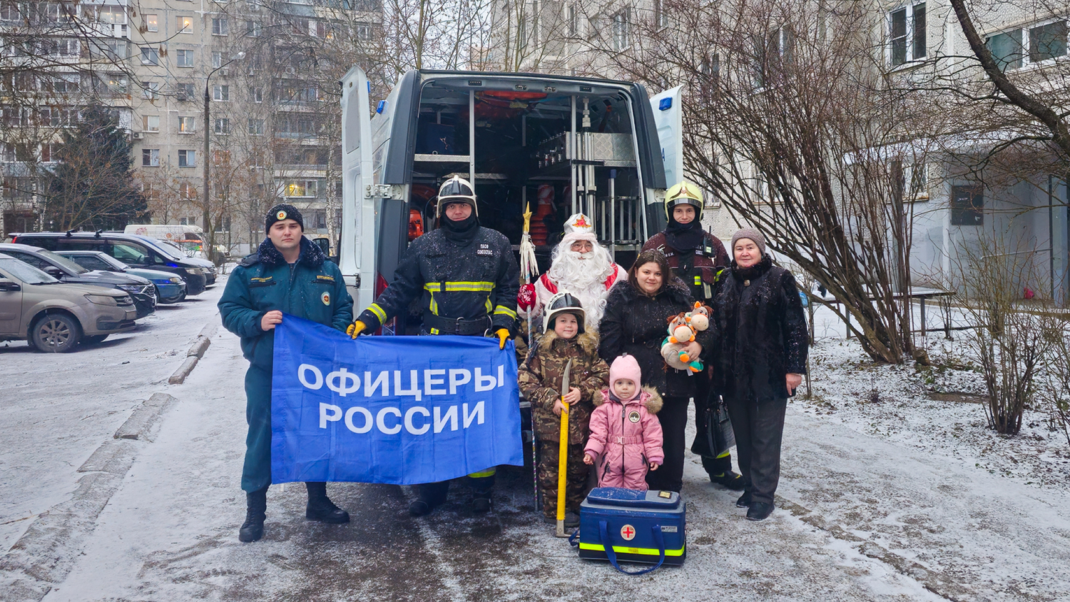 При поддержке общественных и региональных организаций "Офицеры России", ООО "РКС" и волонтеров удалось создать для детей ощущение настоящего новогоднего волшебства. Дед Мороз подарил сладкие подарки, а спасатели дали примерить свою экипировку и прокатили детей в настоящей аварийно-спасательной машине.